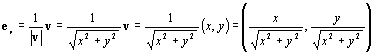 Enhetsvektor - lång version (Det finns också en kortare version om du vill ha mindre förklaringar eller bakgrund.) En enhetsvektor är en vektor med normen ett. Ofta talar man om enhetsvektorn i en viss riktning, eller enhetsvektorn till en annan vektor. Man menar då en vektor med samma riktning som den ursprungliga vektorn, men med normen ett. Man säger ibland att man normerar en vektor, vilket innebär att man förändrar dess längd så att den blir ett, men riktingen förblir oförändrad. Som för alla vektorer har dock placeringen ingen betydelse. Ofta kallas enhetsvektorer e med ett index efter sin ursprungliga vektor. För vektorn v har vi alltså enhetsvektorn ev. Eftersom vi kan beräkna normen för en vektor, kan vi nu ganska enkelt beräkna enhetsvektorn till en vektor. Vi känner ju till att om man multiplicerar en vektor med en skalär så ändras vektorns längd men inte dess riktning. Om vi nu multiplicerar vektorn med skalären 1/|v|, så får vi ju en vektor med samma riktning, men med längden ett, dvs enhetsvektorn. Om vi nu har en vektor v = (x, y), så är dess norm |